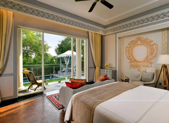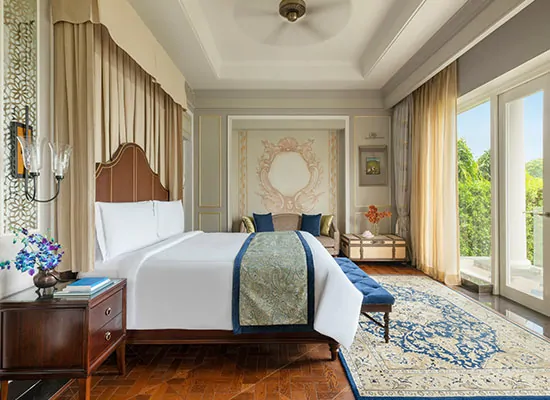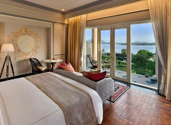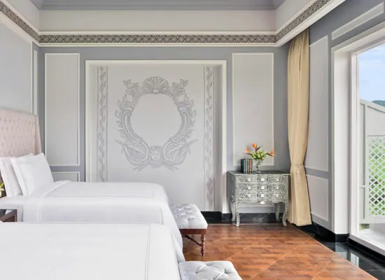 Our beautifully designed rooms, suites, and villas offer panoramic views of the tranquil lake and lush gardens. Each space is a perfect blend of contemporary style and traditional Rajasthani decor, providing a luxurious retreat with every modern amenity for your ultimate comfort.
